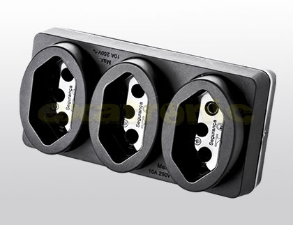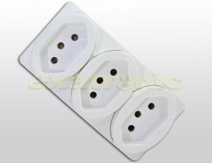 - Desenvolvido para o encaixe de 3 tomadas de 3 pinos simultâneamente.