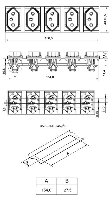 - Desenvolvido para o encaixe em paineis. Corpo plástico de engenharia auto extinguível e contatos em liga de cobre.